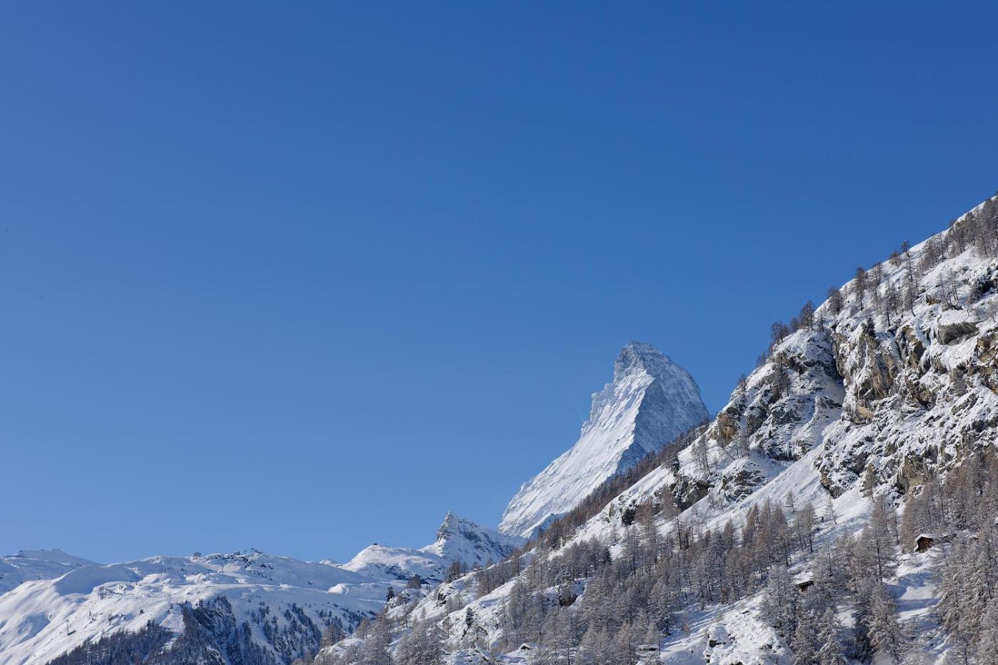 All rooms and apartments feature a balcony offering panoramic views of the surrounding mountains, including the Matterhorn.